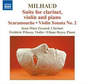 These marvelous examples of early Milhaud are no exception. Only the French would dare exploit two such bright instruments as the clarinet and violin together, playing in their high ranges where the combined sound is more piercing still. The joyous, quirky suite for these two instruments plus piano is a reduction of his 1936 incidental music for Jean Anouilh’s play Le Voyageur sans bagages. Latin-American rhythms abound to give the work a light and happy feeling, and these performers capture that mood perfectly. The first and third movements of Scaramouche derive from the incidental music Milhaud wrote for a revival of Molière’s Le Médecin Volant in 1937. The lead instrument is, optionally, clarinet or alto saxophone. As well as Jean-Marc Fessard plays it on clarinet, I’d love to hear the alto sax version.