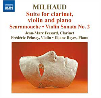 « This is a nice little selection of the chamber music of Darius Milhaud featuring clarinet, violin, and piano in varying combinations, beginning with the brief Suite for all three instruments. There’s a gentleness and wittiness in most of this music — although Milhaud could also be dolorous, for example in the introduction of the Suite’s finale — primarily because he drew on themes from his stage music for the Suite, Scaramouche, and the Cinéma fantaisie d’après Le boeuf sur le toit, not to mention the presence of his trademark infectious Brazilian rhythms. The Violin Sonata No. 2 and the Clarinet Sonatina are slightly more serious in mood, and in the case of the Sonatina, more harmonically adventurous. The three musicians here — clarinetist Jean-Marc Fessard, violinist Frédéric Pélassy, and pianist Eliane Reyes — work excellently together to bring the music to life. Their ensemble work in the Suite is sharply precise. Even in the Sonata and Sonatina, there is a sense that it’s not all just about the violin or clarinet. Pélassy and Fessard allow Reyes to bring out the piano part to show that the works are often more like true duets, for example in Scaramouche’s dizzying opening or the Violin Sonata’s Vif movement. The Fantaisie is a more of a duet almost by necessity because there’s so much going on in it, but without a doubt it’s the violin that gets the spotlight with some fancy effects (such as playing in two keys at once) and even a cadenza that’s not in the original work. The three musicians also give detailed attention to coloring in a natural, instinctive-sounding way. The sound is good enough that you can occasionally hear Fessard’s and Pélassy’s breathing, but with the speakers at anything less than average volume, some of the shaping of phrases is missed and even quiet notes are lost at times. The Suite, Scaramouche, and the Fantaisie are obvious picks here, leaving no doubt as to why they are so popular, but the other selections are also deserving of a listen. »